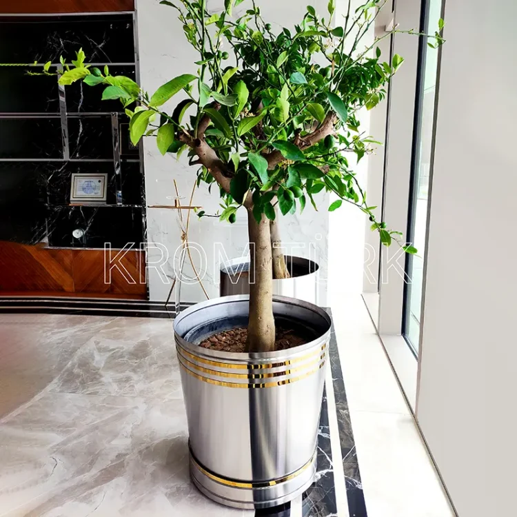 Krom Türk talebe özel, ölçü ve tasarım farklılıklar ile her ölçü ve özel işcilikte krom saklsılar imal edilmektedir. Otel bahçeleri lobi iç mekanlarında ve yaşam lanlarının her mekanında özel talepleriniz doğrultusunda krom saksılar üretmekteyiz.