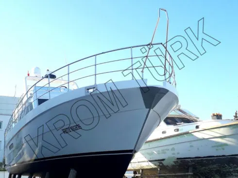Antalyalı iş adamına ait WhiteNights adlı yatın tadilatlarını bitirdik. Antalya yat limanında gerçekleştirdiğimiz işlemler arasında yat krom korkulukları, gölgelikleri, burun sacı ve denize iniş merdivenleri ile hem kalitesi artmış oldu hemde uzun yıllar deniz suyuna tam dayanıklılığı olan krom ile muhteşem bir görüntüye sahip oldu.